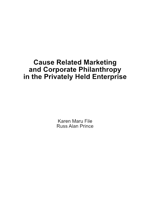 ABSTRACT. Owners of businesses represent an interesting case in the study of the intersection of personal and corporate philanthropic values. Because individuals who own businesses have the means and the ability to act on philanthropic motivations through the medium of their businesses, it is interesting to explore the extent to which their corporate contributions to nonprofits are philanthropic in nature or instrumentally motivated, as in the instance of cause related marketing. The trade-offs between cause related marketing and corporate support of nonprofits are complex. Although larger firms are increasing their investments in cause related marketing, the extent of and motivations for adoption of cause related marketing among privately held businesses is less well understood. This study of 478 businesses which are supporters of arts organizations shows that privately held businesses of medium size (300 to 500 employees) are participating in cause related marketing to a significant degree. The adoption rate of cause related marketing is about 40%, and the primary benefits sought are company image enhancement and product marketing support. Adoption of cause related marketing among privately held and smaller enterprises will grow as CEOs exhibit satisfaction with the results of their program, intend to engage in positive word of mouth about it, and plan to allocate more resources to it.